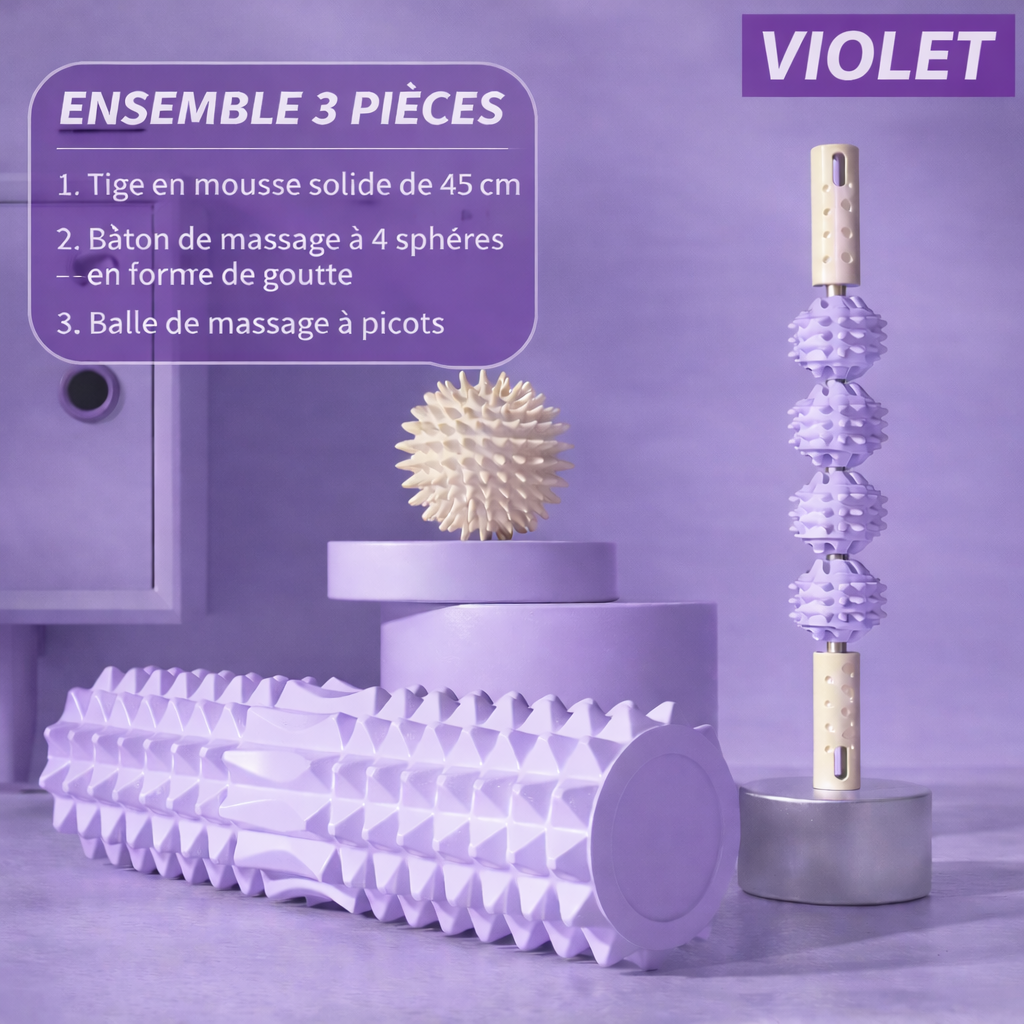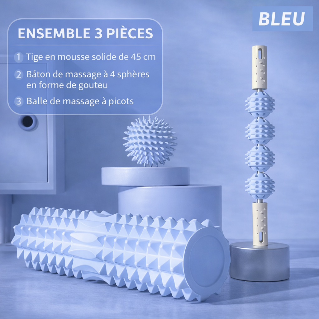 Offrez à votre corps une expérience de massage professionnelle à domicile grâce à ce set de massage premium 3 pièces, spécialement conçu pour soulager les tensions musculaires, améliorer la circulation sanguine et accélérer la récupération après l’effort.